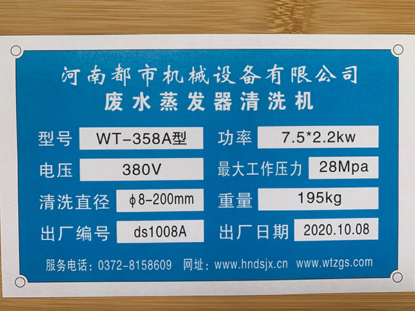 2020年10月10日河北省邢臺糠醛廠趙廠長13937277009關(guān)經(jīng)理與河南都市機械設(shè)備有限公司牟師傅17637277169喬主任03728158609經(jīng)過長期的思考,38年的經(jīng)驗總結(jié),研究開發(fā)出來了新型WT-358A型廢水蒸發(fā)器清洗機,換熱器,凝結(jié)器、預(yù)熱器、粗餾塔清洗機,鍋爐清理機,鍋爐清洗機,同時在關(guān)經(jīng)理的指導(dǎo)下,重新研究過載系統(tǒng)新功能,原來很笨的水鉆、水磚鉆的辦法一個月才可以完成一臺650平方米的硬垢蒸發(fā)器,現(xiàn)在兩天就可以完成任務(wù)。降低了工人們的勞動強度,改變了工人們的工作環(huán)境,縮減了企業(yè)成本費用,提高了工人們的安全性,深受廣大使用者的認(rèn)同和歡迎。