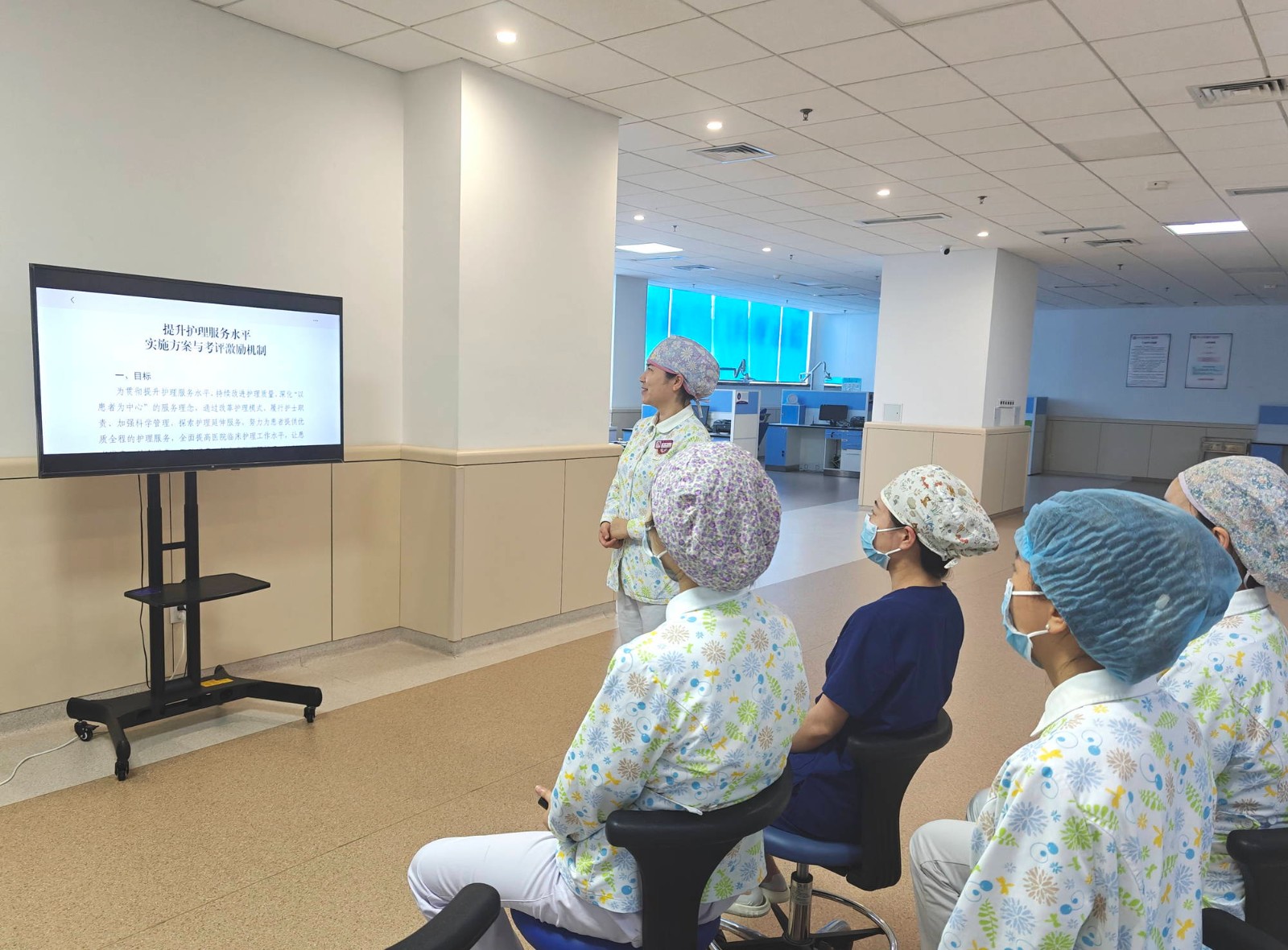 頜面外科護士長王丹首先對提質(zhì)方案、考評機制、服務話術(shù)及流程進行了傳達和解讀。她講到,提升護理服務質(zhì)量就是以患者滿意為總體目標,通過加強護士禮儀規(guī)范培訓、全面提升職業(yè)素質(zhì)及專業(yè)能力等多種措施,進一步強化全員優(yōu)質(zhì)護理服務工作理念,制定和優(yōu)化服務流程,更好地滿足患者需求。同時保障患者來院期間的護理安全與舒適,讓患者各項診療措施切實有效地落實。