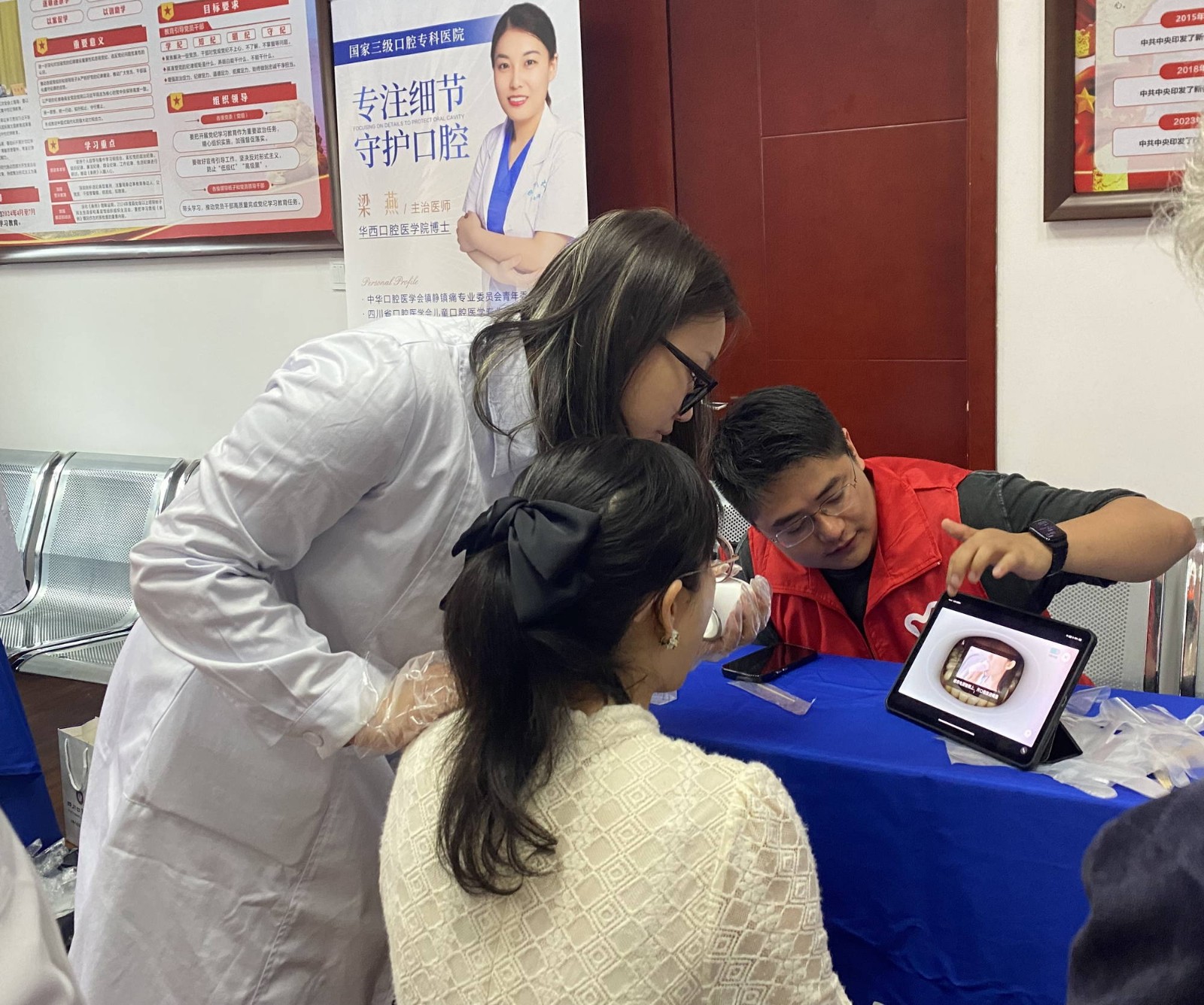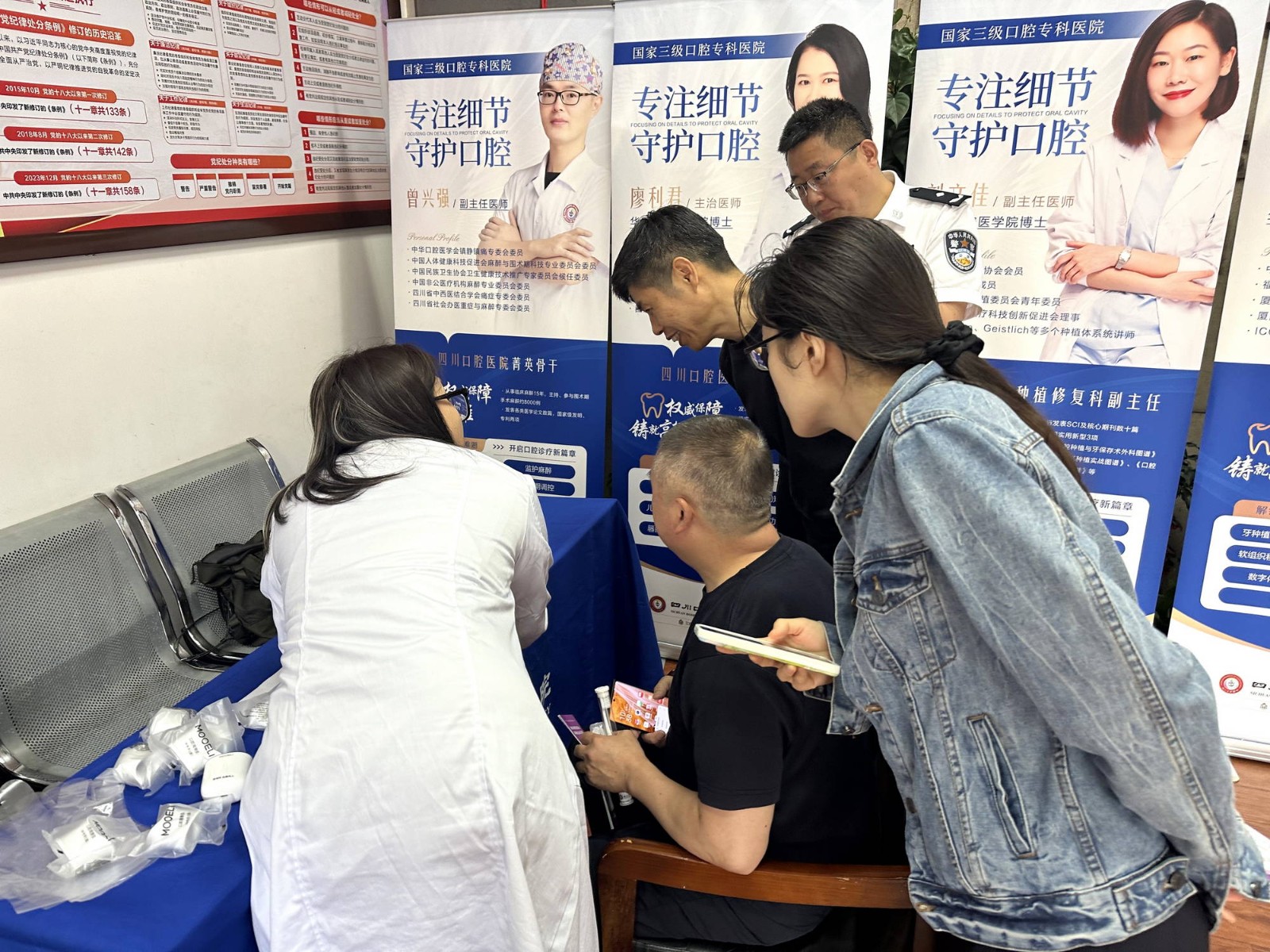 活動中,四川口腔醫(yī)院醫(yī)生在現(xiàn)場對民警進(jìn)行口腔健康檢查,并通過最新的數(shù)字化口掃技術(shù),逐一排查個人口腔問題,讓大家多角度、多維度地了解自己的牙齒問題,引導(dǎo)大家做到口腔問題早知道、早發(fā)現(xiàn)、早治療。同時,細(xì)心的解答他們關(guān)于愛牙護(hù)齒方面的專業(yè)問題,根據(jù)每個人的不同情況提出相關(guān)建議。