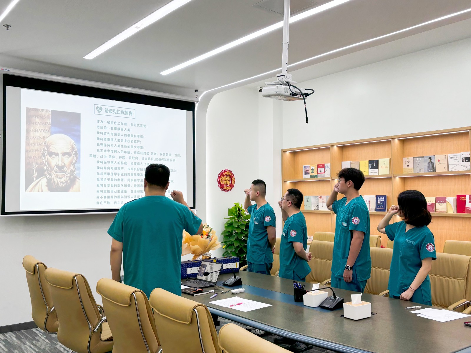 活動伊始,門診部行政代表向每一位在崗位上默默奉獻的醫(yī)師致以最崇高的敬意和節(jié)日的問候。隨后,全體醫(yī)生在莊嚴的氛圍中,齊聲誦讀了醫(yī)學(xué)界的圣典——希波克拉底誓言。誓言中的每一句都擲地有聲,不僅是對醫(yī)德的承諾,更是對醫(yī)者責任與使命的堅守。
