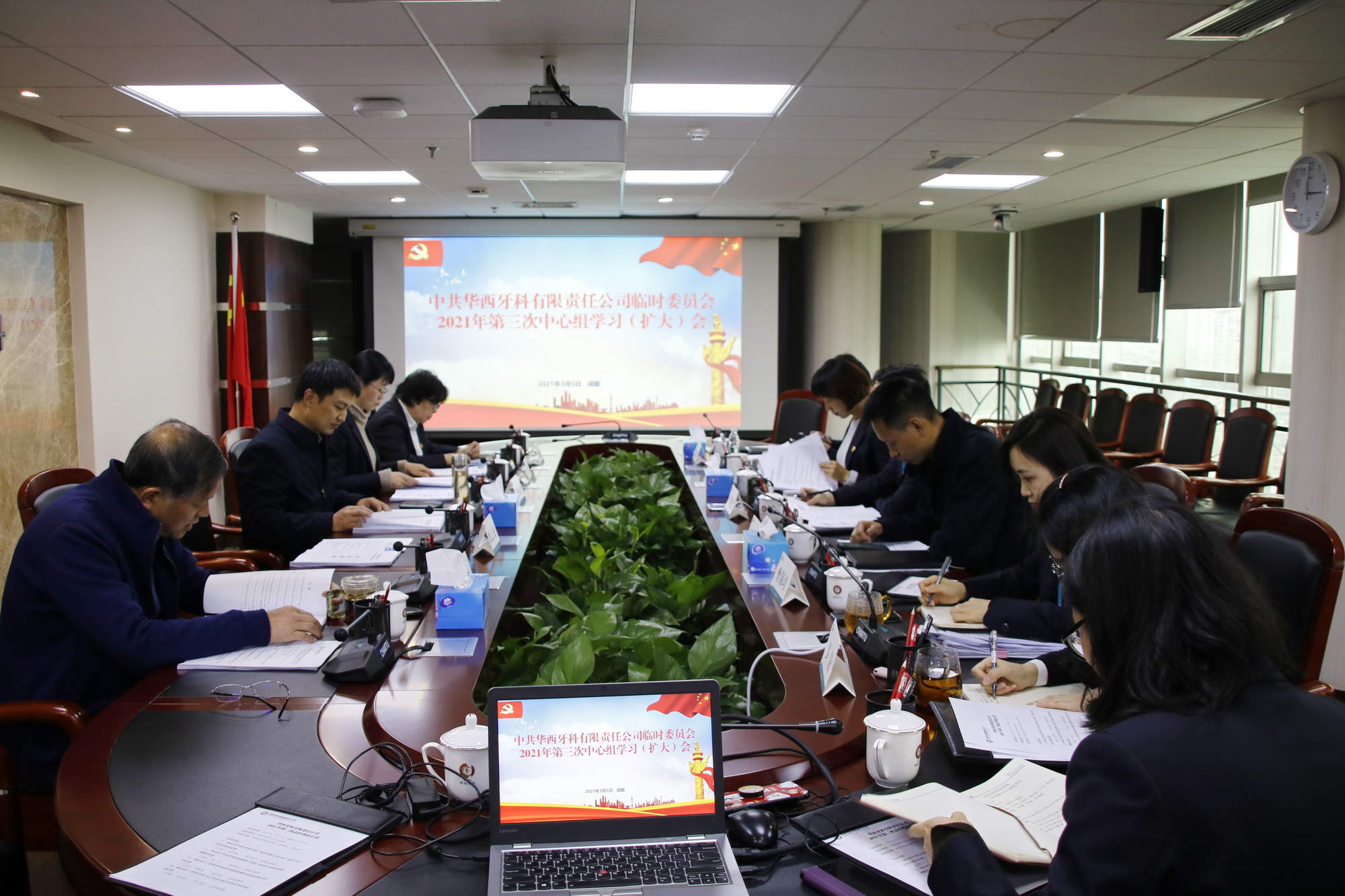 3月5日下午,華西牙科臨時(shí)黨委召開2021年第三次中心組學(xué)習(xí)(擴(kuò)大)會(huì),集中學(xué)習(xí)了習(xí)近平總書記關(guān)于推動(dòng)巡視工作向縱深發(fā)展重要論述摘錄、《中國共產(chǎn)黨巡視工作條例》和《中共四川省委巡視工作辦法》,傳達(dá)學(xué)習(xí)了省委彭清華書記在全省黨史學(xué)習(xí)教育動(dòng)員大會(huì)上的重要講話精神和《川投集團(tuán)黨委關(guān)于印發(fā)省委巡視“回頭看”反饋意見和川投集團(tuán)黨委書記表態(tài)發(fā)言的通知》。川投集團(tuán)黨委委員、副總經(jīng)理兼華西牙科黨委書記、董事長羅永平主持會(huì)議,黨委副書記、紀(jì)委書記、職工董事金晶,副總經(jīng)理劉云戈、黨委委員、董事、財(cái)務(wù)總監(jiān)王海帆、專家委副主任鄭立舸及公司各部門負(fù)責(zé)人參加會(huì)議。