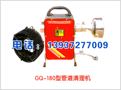 GQ-180型防水防漏電管道疏通機(jī),是目前市場(chǎng)上成熟方便清理機(jī),它具有GQ-80、GQ-100型的優(yōu)點(diǎn)外,電機(jī)采用臥式安裝法(防水功能)彈簧自動(dòng)進(jìn)出隨意、使用方便。